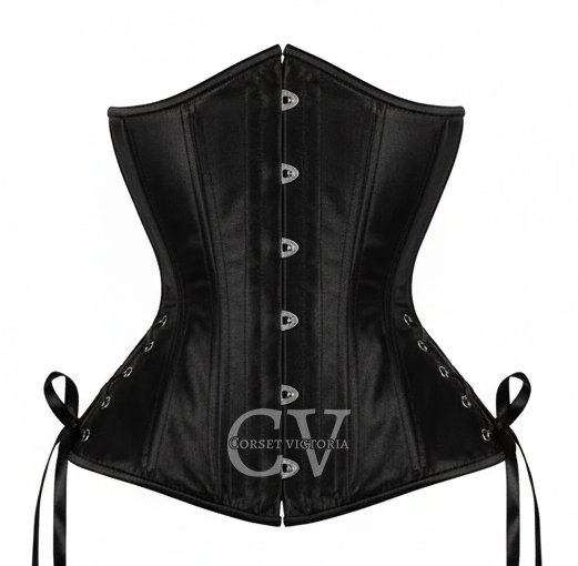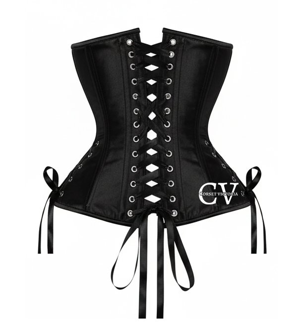 Unleash your dark side this Halloween with our Black satin underbust corset with side ribbon ties, designed for gothic elegance and dramatic flair. Made with smooth satin fabric, strong steel boning, and a secure steel busk closure, it sculpts the perfect hourglass figure. The side satin ribbon ties add a touch of romance and adjustability, making it ideal for pairing with skirts, dresses, or gothic bottoms.