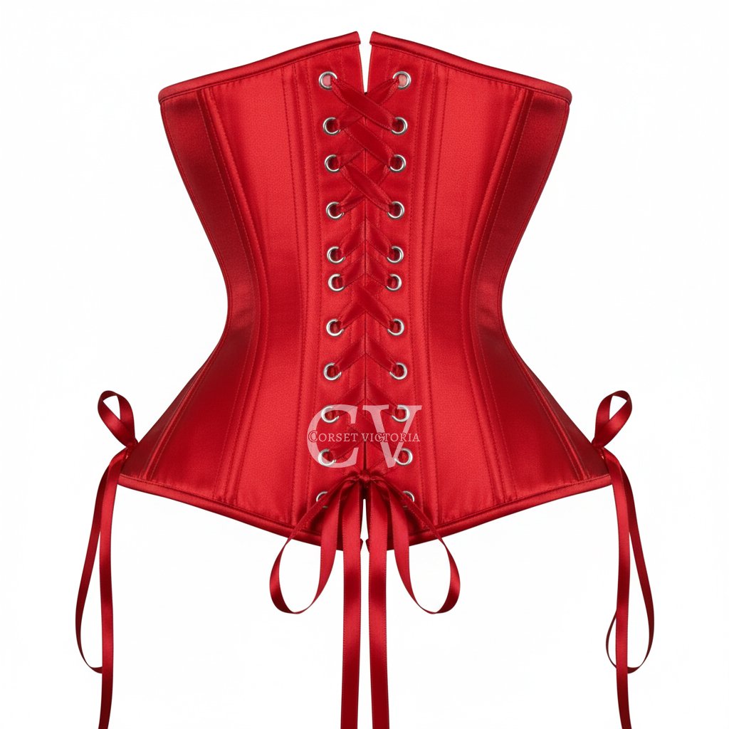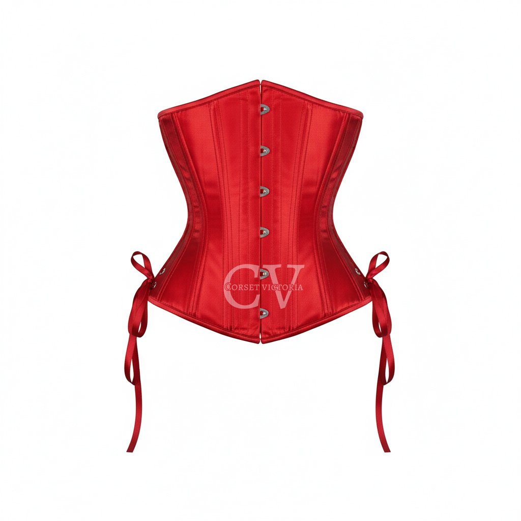 Unleash your dark side this Halloween with our red satin underbust corset with side ribbon ties, designed for gothic elegance and dramatic flair. Made with smooth satin fabric, strong steel boning, and a secure steel busk closure, it sculpts the perfect hourglass figure. The side satin ribbon ties add a touch of romance and adjustability, making it ideal for pairing with skirts, dresses, or gothic bottoms.